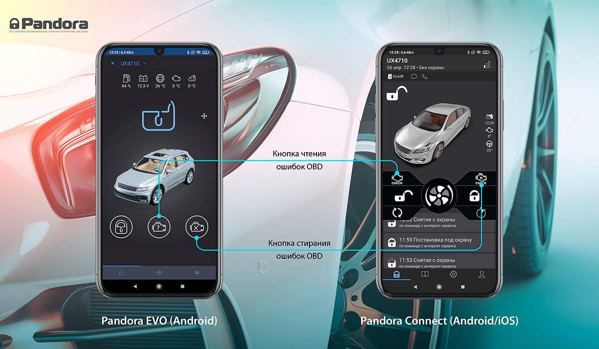 В системе реализован режим автоматической диагностики и присутствуют алгоритмы чтения/фиксации/стирания ошибок, не требующие подключения по Bluetooth через мобильное приложение. Теперь платформа сама определяет оптимальное время для проверки на исправность работы систем автомобиля, позволяя владельцу самостоятельно диагностировать и стирать OBD-ошибки, транслируя подробную историю изменений на серверы Pandora.