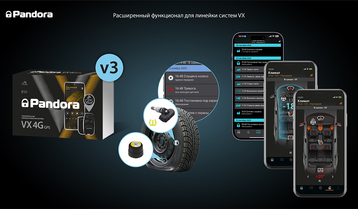 Pandora VX 4G GPS v3 имеет расширенные возможности по отображению дополнительной информации о положении стекол и об уровне стеклоомывающей жидкости (доступно не для всех автомобилей), а также поддерживает внешние и внутренние датчики давления в шинах по Bluetooth-интерфейсу.