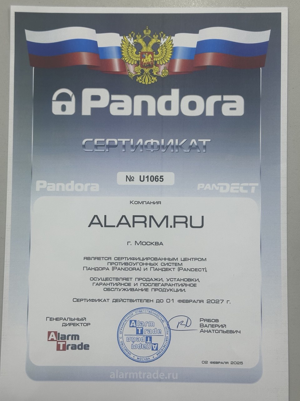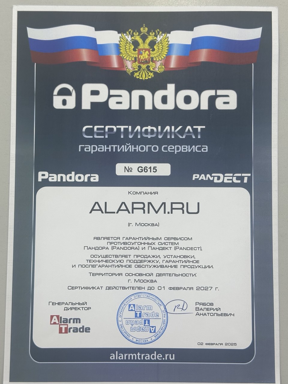 Все представленное на нашем сайте оборудование мы продаем в розницу и оптом, отправляем по России и за рубеж, а также устанавливаем в сети собственных авторизованных технических центров в Москве, Санкт-Петербурге и других городах России. Мы даем гарантию на свои работы 3 года, а также предоставляем все необходимые сертификаты, подтверждающие право работать с оборудованием Pandora и Pandect — никаких проблем с заводской гарантией на автомобиль при обращении к нам у вас не возникнет.